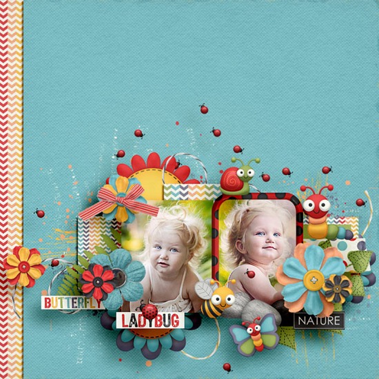 I have a brand new springy kit available HERE in my store today. Bugging Out is a bright and happy insect themed digital scrapbooking kit. It includes 23 textured papers, full alpha in 3 colors, over 70 unique elements and 27 unique word bits. Bugging Out is on sale during Fresh Fruit this week at Scrap Orchard. I am offering my subscribers and followers a larger discount. Take 35% off (instead of the regular 20% discount) when you use my coupon code (valid through March 14th). Coupon code: KA-35PERCENT