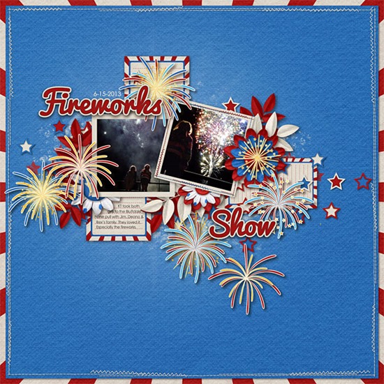 I used Stars and Stripes to scrap page of my daughters watching the grand finale of a fireworks show after a horse pull competition last week!